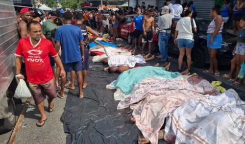 Após a Operação Contenção, realizada na terça-feira (28) nos Complexos da Penha e do Alemão, no Rio de Janeiro, moradores encontraram cerca de 60 corpos em uma área de mata e os reuniram na Praça São Lucas, no centro da comunidade. Os corpos não estariam incluídos na contagem oficial de 64 mortos (60 suspeitos e 4 policiais), o que pode elevar o total de vítimas para até 130, tornando a ação a mais letal da história do estado.