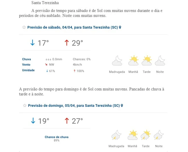 Santa Terezina A previsão do tempo